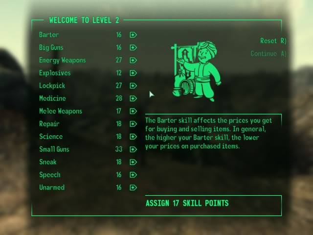Then, related, but equally brilliant in its own right, there’s the XP, perks and S.P.E.C.I.A.L. character development system, which is as close to perfection in Fallout as anything I’ve yet come across. Here you can add Action Points, make the chances of getting a critical headshot greater, choose to unlock every location on the map, make your character stronger (thus able to carry more stuff), more Charismatic (thus unlocking more conversation options), more Science-y (hack more terminals), in a virtually unlimited set of combinations.